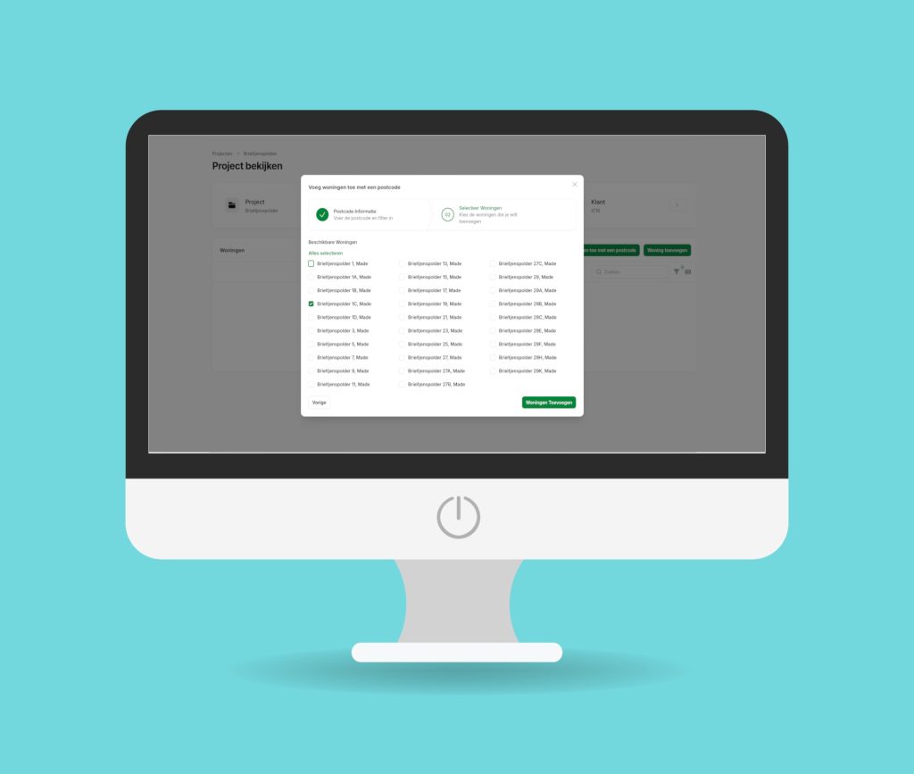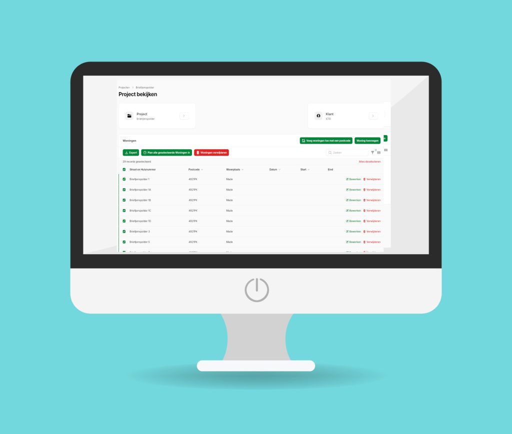 Dankzij integratie met de PDOK-opendataset kunnen woningen eenvoudig en accuraat aan projecten worden toegevoegd op basis van postcode en adresinformatie.